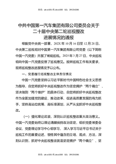 中共中国第一汽车集团有限公司委员会关于二十届中央第二轮巡视整改进展情况的通报.docx