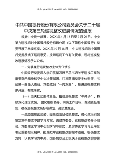 中共中国银行股份有限公司委员会关于二十届中央第三轮巡视整改进展情况的通报.docx