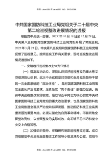 中共国家国防科技工业局党组关于二十届中央第二轮巡视整改进展情况的通报.docx