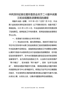 中共深圳证券交易所委员会关于二十届中央第三轮巡视整改进展情况的通报.docx