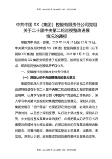 中共中国XX集团有限公司党组关于二十届中央第二轮巡视整改进展情况的通报.docx