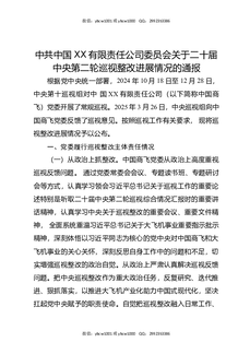 中共中国XX有限责任公司委员会关于二十届中央第二轮巡视整改进展情况的通报.docx