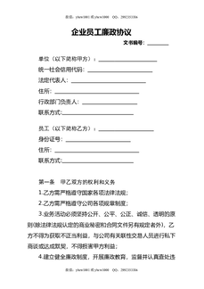 企业员工廉政协议.docx