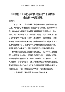 XX银行XX分行学习贯彻党的二十届四中全会精神专题党课.docx
