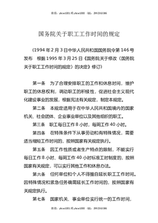 国务院关于职工工作时间的规定.docx