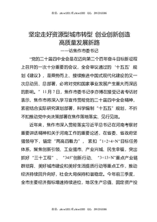 坚定走好资源型城市转型,创业创新创造高质量发展新路.docx