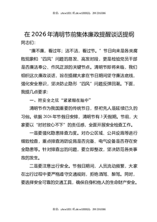 在2026年清明节前集体廉政提醒谈话提纲.docx