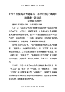 2026全国两会专题课件:总书记指引加紧推进健康中国建设.docx