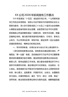 XX公司2026年新闻宣传工作要点.docx