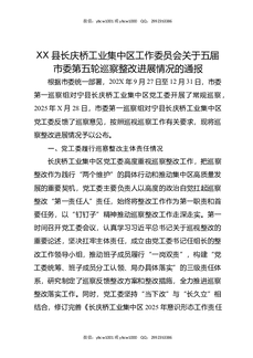 XX县长庆桥工业集中区工作委员会关于五届市委第五轮巡察整改进展情况的通报.docx