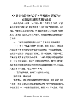 XX置业有限责任公司关于五届市委第四轮巡察整改进展情况的通报.docx