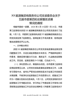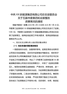 中共XX新能源集团有限公司总支部委员会关于五届市委第四轮巡察整改进展情况的通报.docx