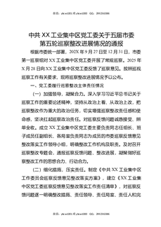 中共XX工业集中区党工委关于五届市委第五轮巡察整改进展情况的通报.docx