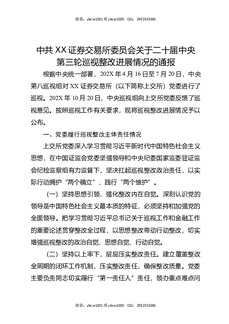 中共XX证券交易所委员会关于二十届中央第三轮巡视整改进展情况的通报.docx