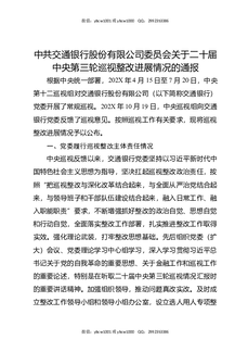 中共交通银行股份有限公司委员会关于二十届中央第三轮巡视整改进展情况的通报.docx
