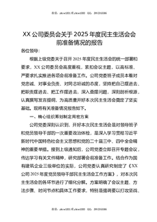 XX公司委员会关于2025年度民主生活会会前准备情况的报告.docx