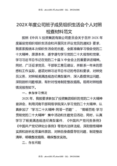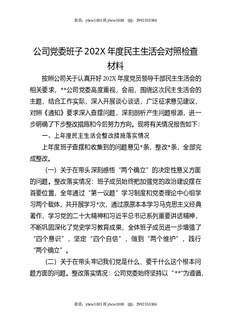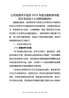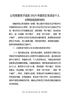 202X年度公司班子成员组织生活会个人对照检查材料范文.docx