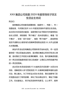 XXX集团公司党委202X年度领导班子民主生活会主持词.docx