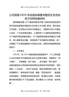 公司党委202X年巡视巡察整专题民主生活会班子对照检查材料.docx