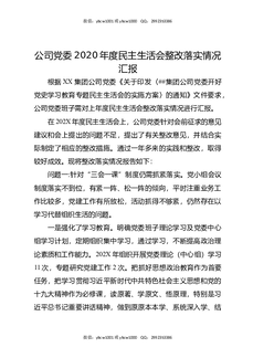 公司党委202X年度民主生活会整改落实情况汇报.docx