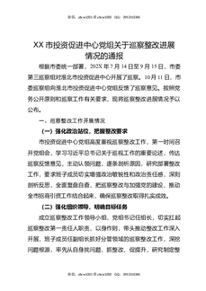 XX市投资促进中心党组关于巡察整改进展情况的通报.docx