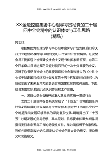 XX金融控股集团中心组学习贯彻党的二十届四中全会精神的认识体会与工作思路(精品).docx