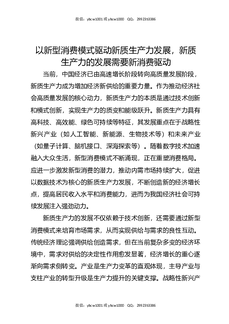以新型消费模式驱动新质生产力发展,新质生产力的发展需要新消费驱动.docx