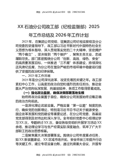 XX石油分公司政工部(纪检监督部)2025年工作总结及2026年工作计划.docx