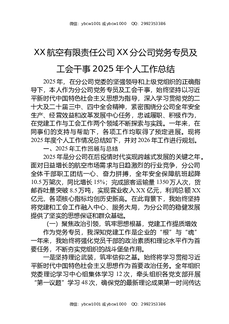 XX航空有限责任公司XX分公司党务专员及工会干事2025年个人工作总结.docx