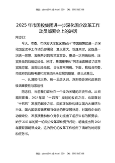 2025年市国投集团进一步深化国企改革工作动员部署会上的讲话.docx