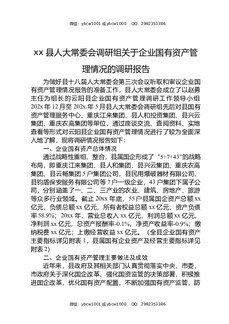 XX县人大常委会调研组关于企业国有资产管理情况的调研报告.docx
