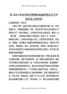 全市优化营商环境暨民营企业工作座谈会上的讲话.docx