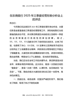 在农商银行2025年三季度经营形势分析会上的讲话.docx