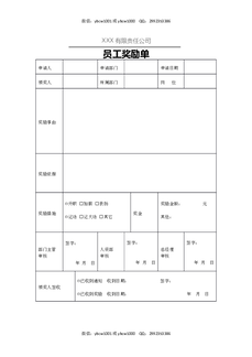XX有限责任公司员工奖励单.docx