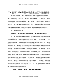 XX银行2026年第一季度纪检工作情况报告.docx