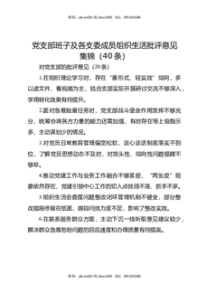 党支部班子及各支委成员组织生活批评意见集锦(40条).docx