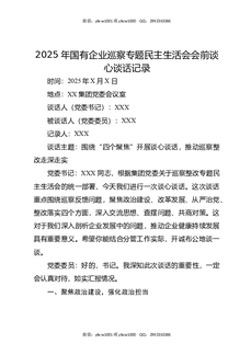 2025年国有企业巡察专题民主生活会会前谈心谈话记录.docx