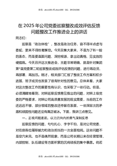 在2025年公司党委巡察整改成效评估反馈问题整改工作推进会上的讲话.docx