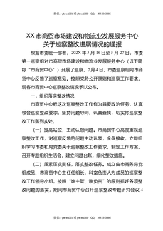 XX市商贸市场建设和物流业发展服务中心关于巡察整改进展情况的通报.docx
