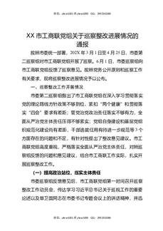 XX市工商联党组关于巡察整改进展情况的通报.docx