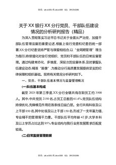 关于XX银行XX分行党员,干部队伍建设情况的分析研判报告(精品).docx