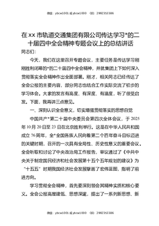 在XX市轨道交通集团有限公司传达学习党的二十届四中全会精神专题会议上的总结讲话.docx