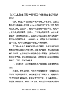 在XX水务集团资产管理工作推进会上的讲话.docx