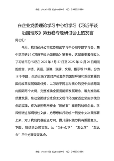 在企业党委理论学习中心组学习习近平谈治国理政第五卷专题研讨会上的发言.docx