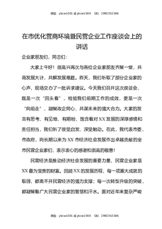 在市优化营商环境暨民营企业工作座谈会上的讲话.docx
