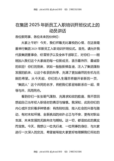 在集团2025年新员工入职培训开班仪式上的动员讲话.docx