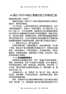 XX银行2025年前三季度纪检工作情况汇报.docx