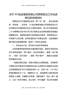 关于XX航运集团有限公司思想政治工作先进单位的申报材料.docx