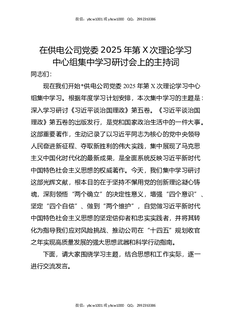 在供电公司党委2025年第X次理论学习中心组集中学习研讨会上的主持词.docx