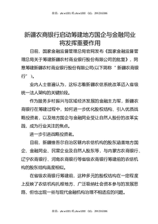 新疆农商银行启动筹建地方国企与金融同业将发挥重要作用.docx